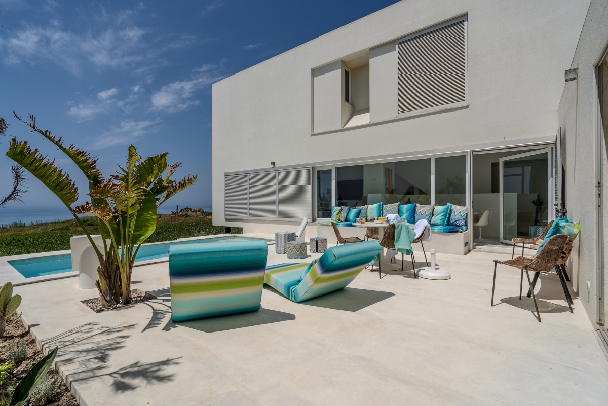 Designed for effortless living, the open-plan layout seamlessly connects the sophisticated lounge, dining area, and fully equipped kitchen, blending style with functionality. Bright interiors flow into the outdoor space, where an elegant setup invites you to unwind and enjoy the ocean breeze.